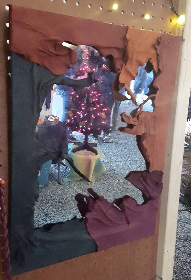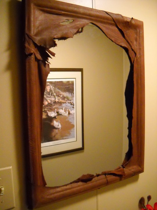 Deerskin wrapped mirror.