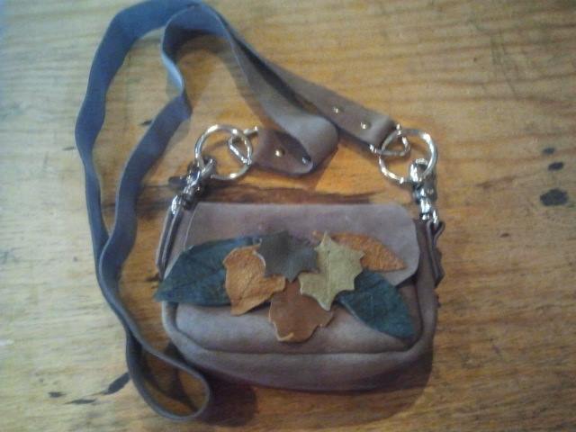 Suede shoulder bag with autumn leaves