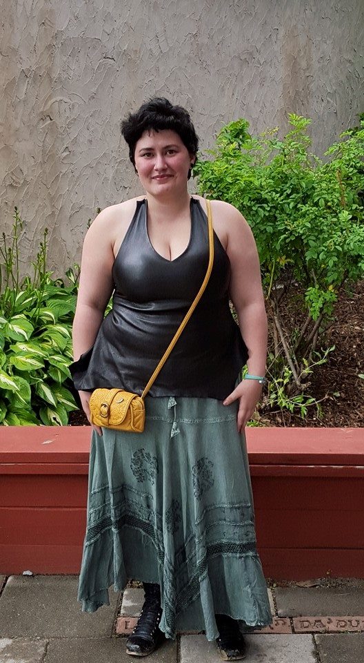 deerskin halter and 2 tone skirt. Taken at the Norman Medieval Faire.