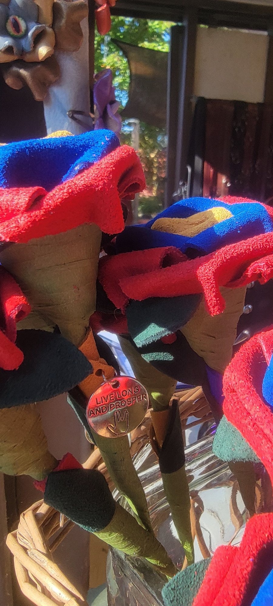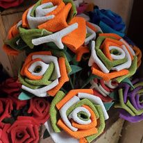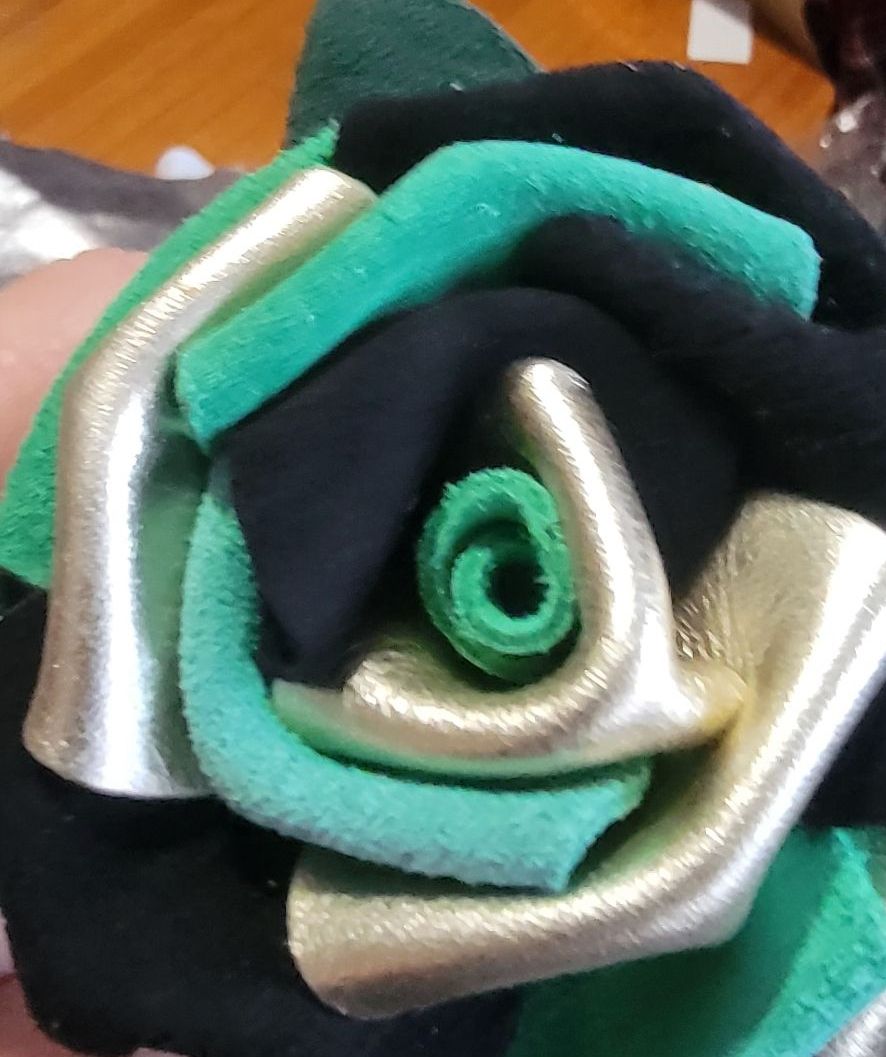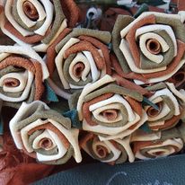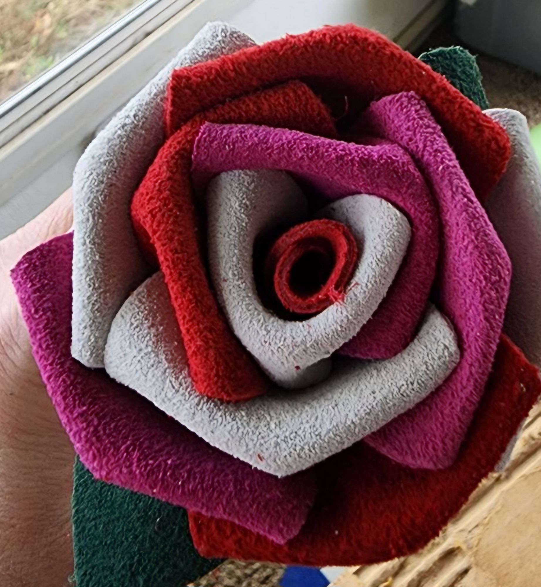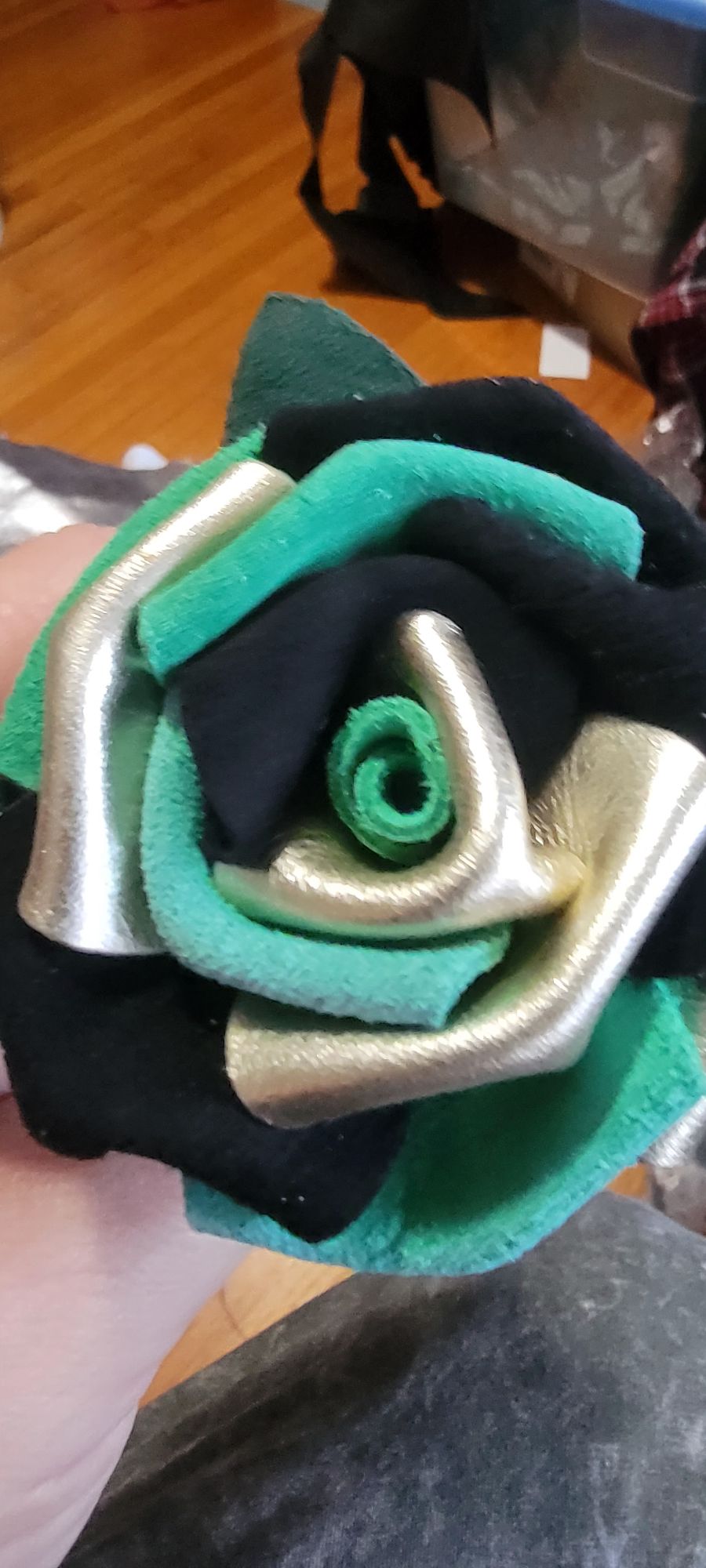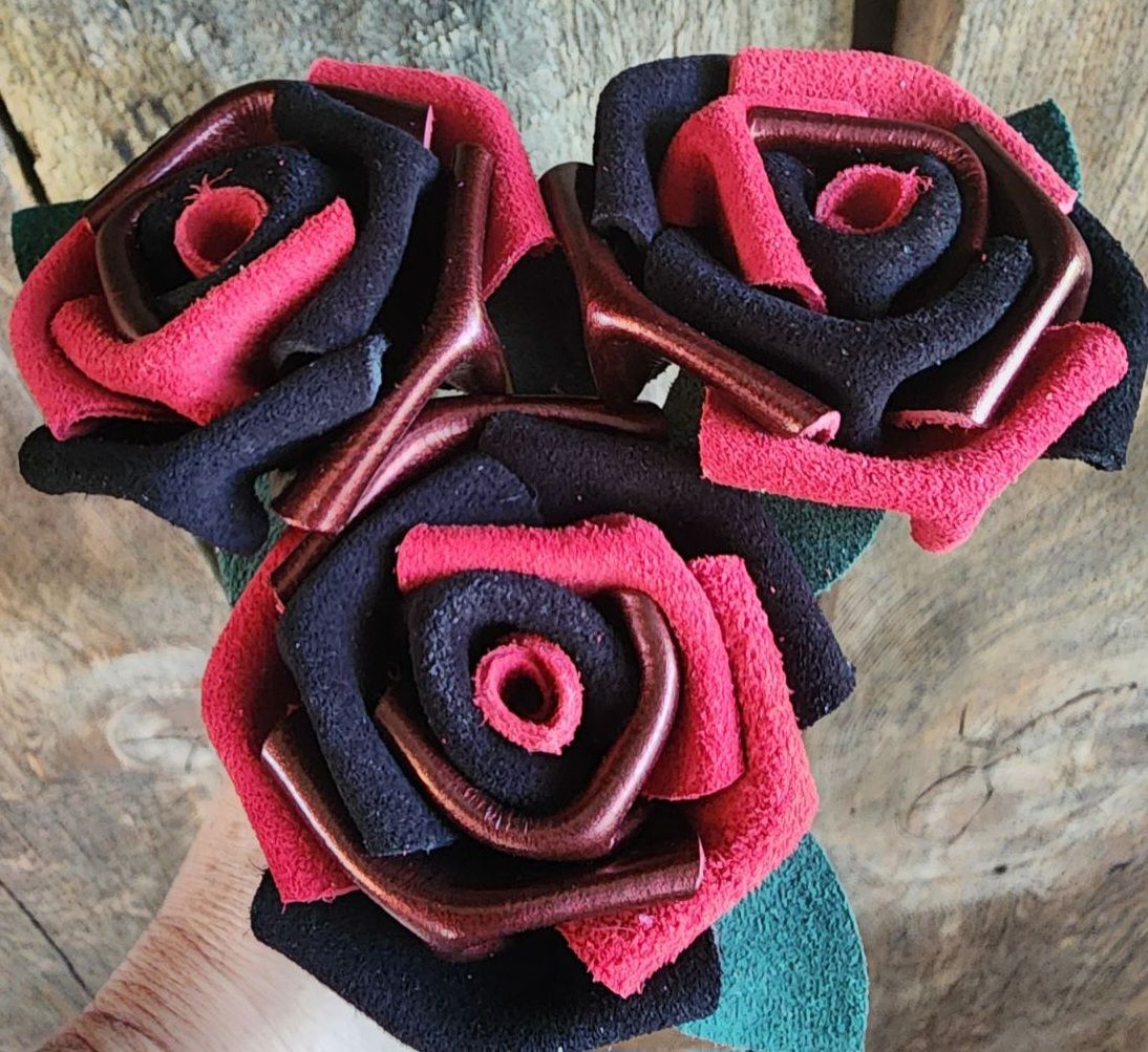 We handmake all of our leather roses. Over the years we have added colors, and discontinued colors. The last few years we introduced limited edition roses to some of the shows we do to promote the theme of the weekend or the show itself. Camo and rainbow roses are our charity roses.